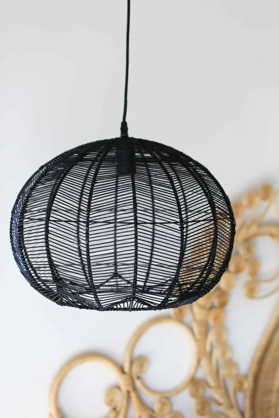 10 - One of my favourites this black undone Moroccan straw shade from Rockett St George. Not overly big which I think sets it apart from many of the others, height 260mm. Could work well as a bedside table pendant lights